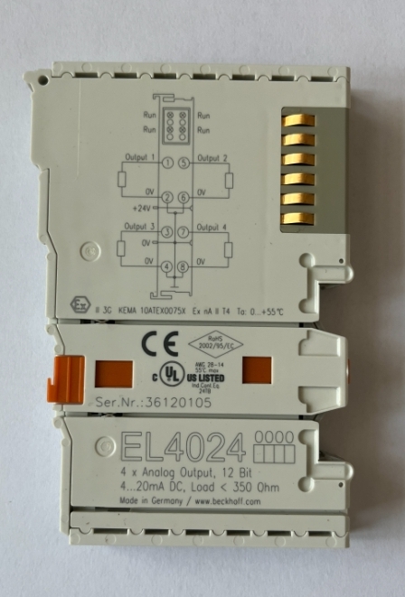 بيكهوف KL2404 عبارة عن وحدة إدخال رقمية توفر أربع قنوات من المدخلات الرقمية بجهد 24 فولت تيار مستمر.